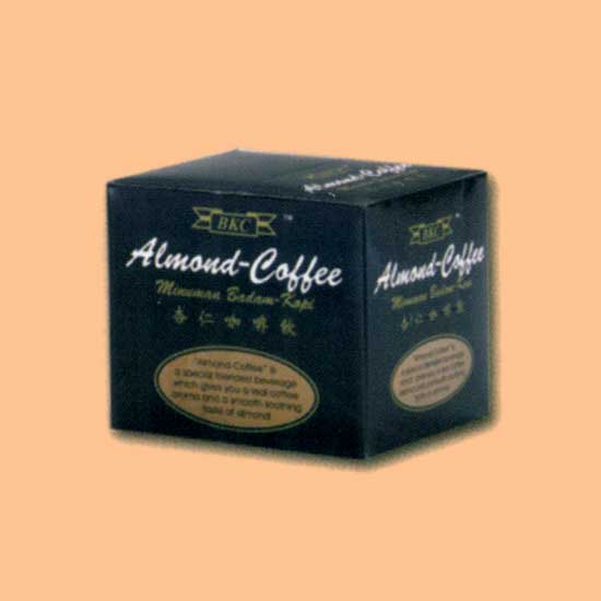 Displayed is a box of almond coffee that is made of carefully selected ingredients. Professionally processed, this coffee retains the aroma of almond while offering a rich taste. Savor the smooth and soothing effect of almond in a unique coffee.