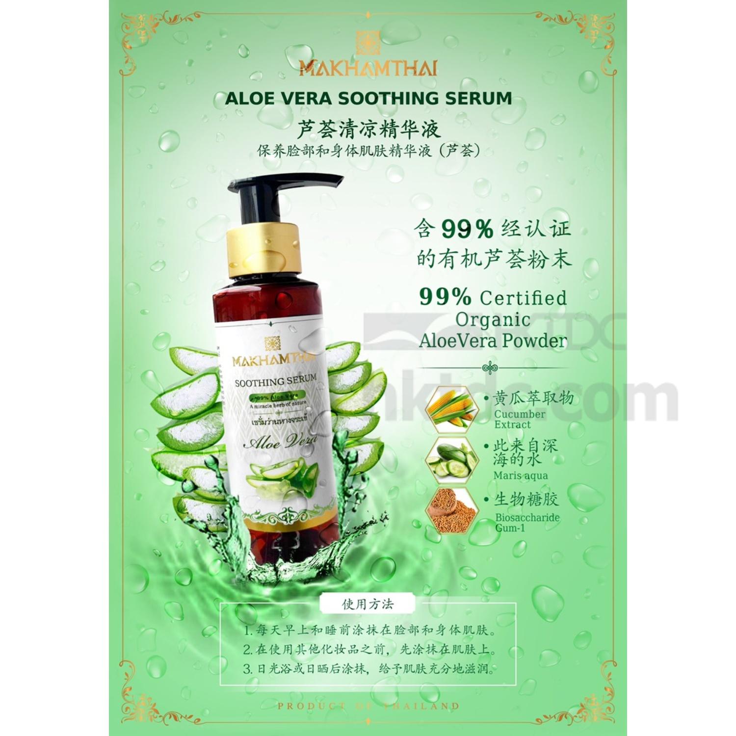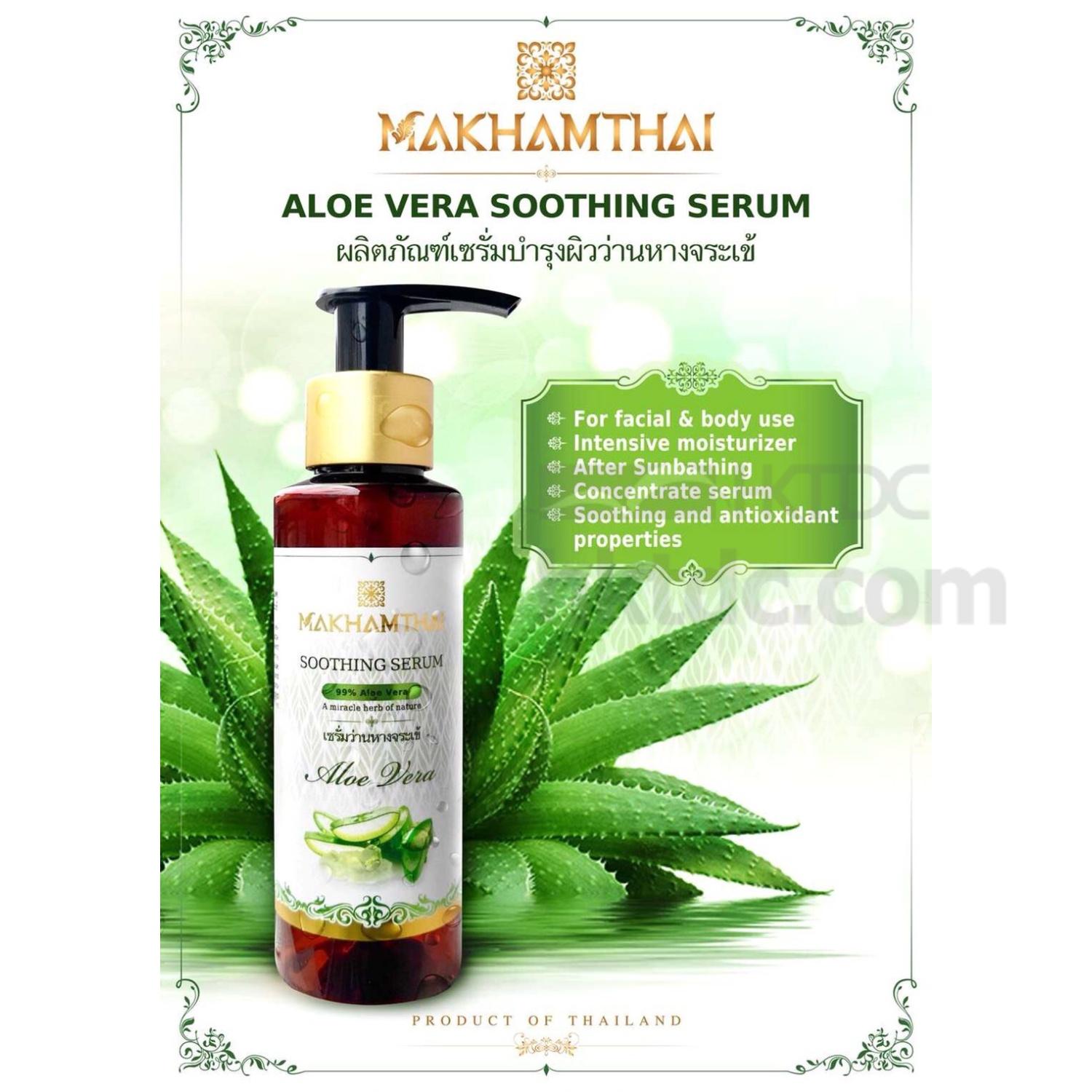 Concentrate Serum leaves a light velvety film on the skin provides resistance to oxidation and is an excellent moisturizer during day and night time. Contain powerful hydrating 99% Certified Organic Aloe Vera powder, Cucumber extract, Maris Aqua and Biosaccharide Gum-1 makes your skin softer, and prevents formation of scars resulting from wounds or skin irritations. It is very soothing on inflammation are useful in case of sunburns or irritation, improves skin smoothness and help the skin retain natural moisture level for long time. MAKHAMTHAI Aloe Vera Soothing Serum rapidly improves total skin quality and condition, on a continuous and lasting basis.
