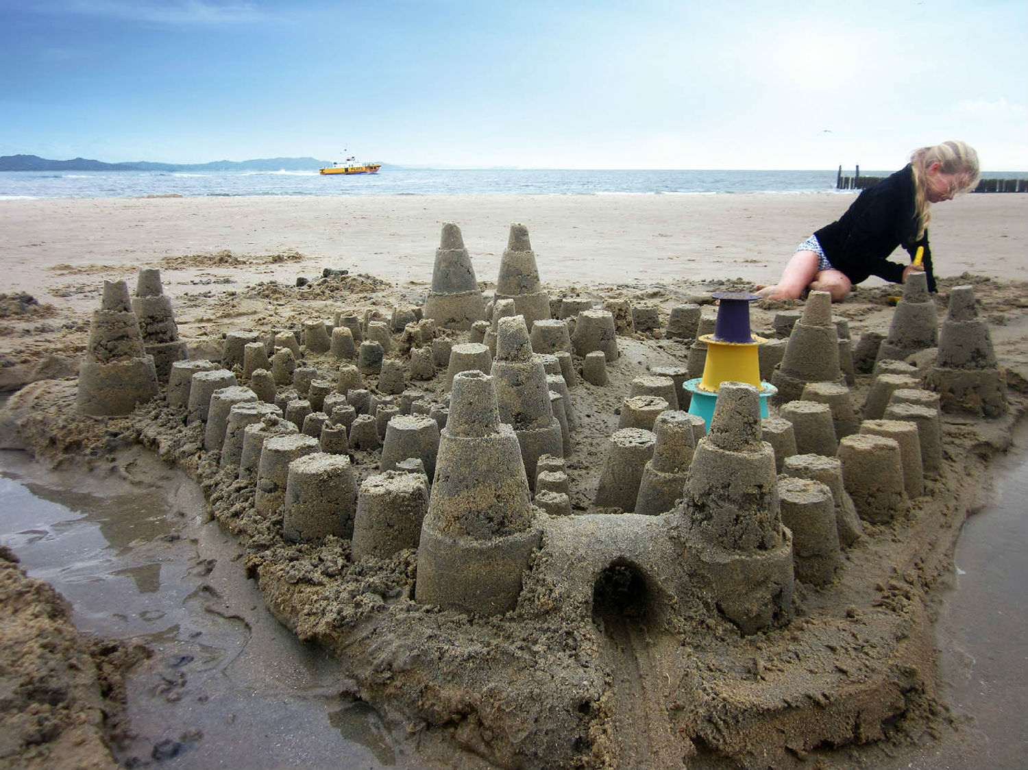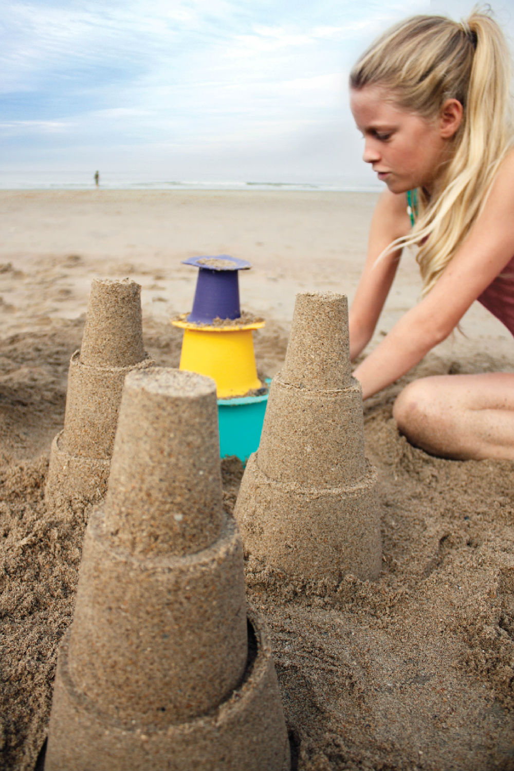 No need for multiple buckets, simply fill, press and form, now your multi-layered tower is done!