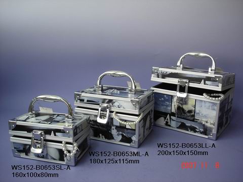 Aluminum jewellery case with size in L 20 x W15 x H15cm / L 18 x W12.5 x H11.5cm / L16 x W11 x H8cm.