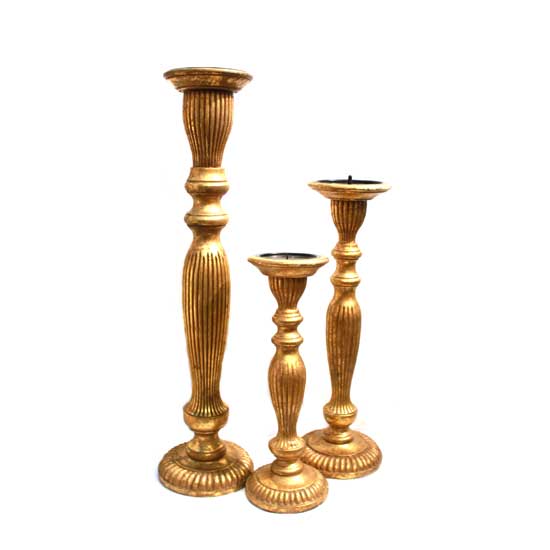This exquisite set includes 3 aluminum candlesticks of different sizes. The delicately crafted candlesticks feature attractive golden finishes. The elegant set adds a unique touch to your tasteful home decor.