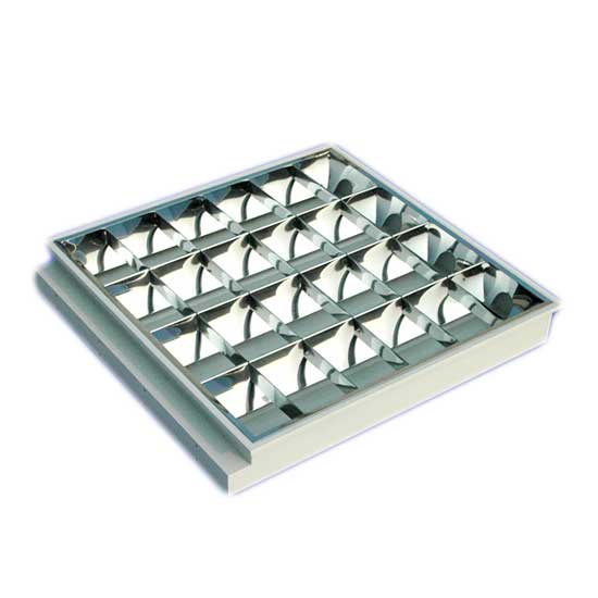 Displayed is an aluminum grid lamp with a spectacular design. The rays are reflected by high-efficiency light guide materials for outstanding performance. The light goes with no strobe or ultraviolet rays. This compact grid light is applicable to offices, supermarkets, showrooms, recreation rooms and dining rooms.
