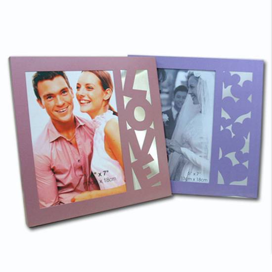 The photo frame features an aluminum construction for added durability. The frame comes in soft color stylishly engraved with words and patterns for a unique touch. This photo frame will be the perfect complement to your home or office.