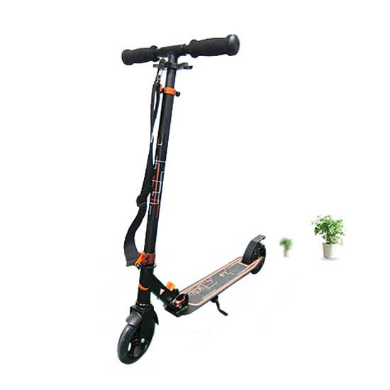 This aluminum scooter is sturdily constructed for extended durability. The folding scooter is easy to carry and store. The well-designed vehicle comes with a fashionable appearance.