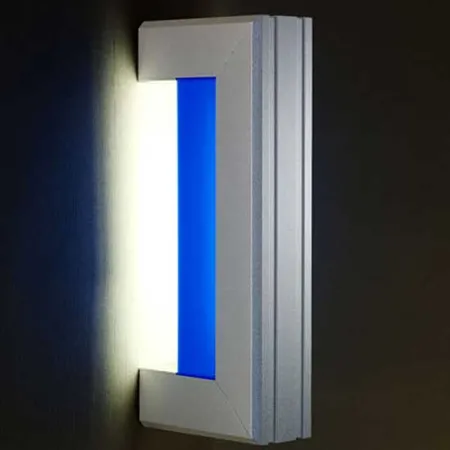 The rectangular-shaped wall lamp features a silver-tone aluminum construction for a modern look. It can be installed either vertically or horizontally. Illuminate the aisle or corridor with this elegant aluminum wall lamp.