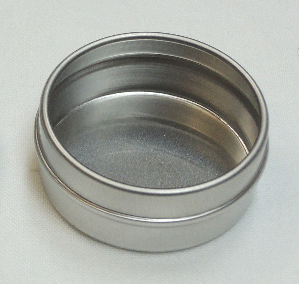 Aluminum box, size is 40mm(dia) x 18mm, suitable for packing lip balm, pills and mints, etc. With glossy varnish coating both inside and outside, food safety and never rusted. Can be with embossing logo and printing colors.