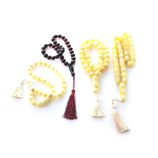 These amber rosaries are carved from amber in straw yellow and dark red colors. This is a string of amber prayer beads used to count the component prayers. It is perfect for priests and religious people.