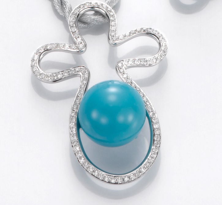 American Arizona Sleeping Beauty Turquoise Gold Pendant with Diamond