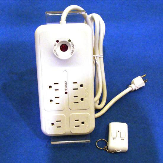 This is a surge protector with 6 sockets that is for American electrical products. It has a key chain transmitter and also a main switch to switch on or off the electrical products, that brings users convenience and safety. It reduces the chance of fire.