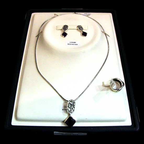 This jewelry set comes with a necklace, a ring and a pair of earrings. They are made of 925 silver with amethyst stones. These jewelry pieces flaunt great craftsmanship with exquisite designs.