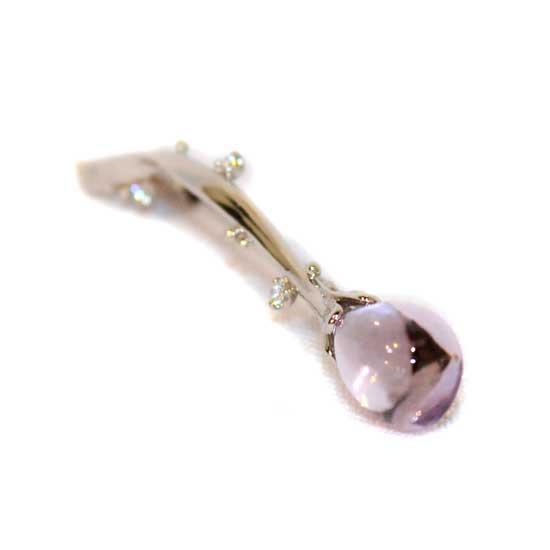 Highlighted is an elegant pendant featuring a cabochon amethyst. It flaunts super fine finish and high clarity for a pure touch. The platinum setting with shimmering diamonds adds elegance to the whole piece.