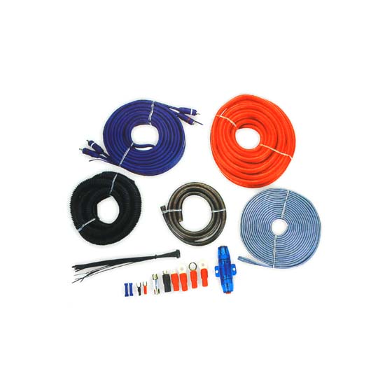 Highlighted is an amplifier wiring kit including comprehensive power cables, fuses, fuse holders, connectors and terminals. With the kit you are able to DIY a customized amplifier system for your car. The kit also includes cable ties which are essential for tidy cabling.