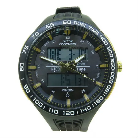 Show off cool accessories in this multi-function analog digital watch. This stylish watch features a round plastic case that highlights an analog dial with multi-function digital screen. The PU strap secures this watch to your wrist to complete your everyday look.