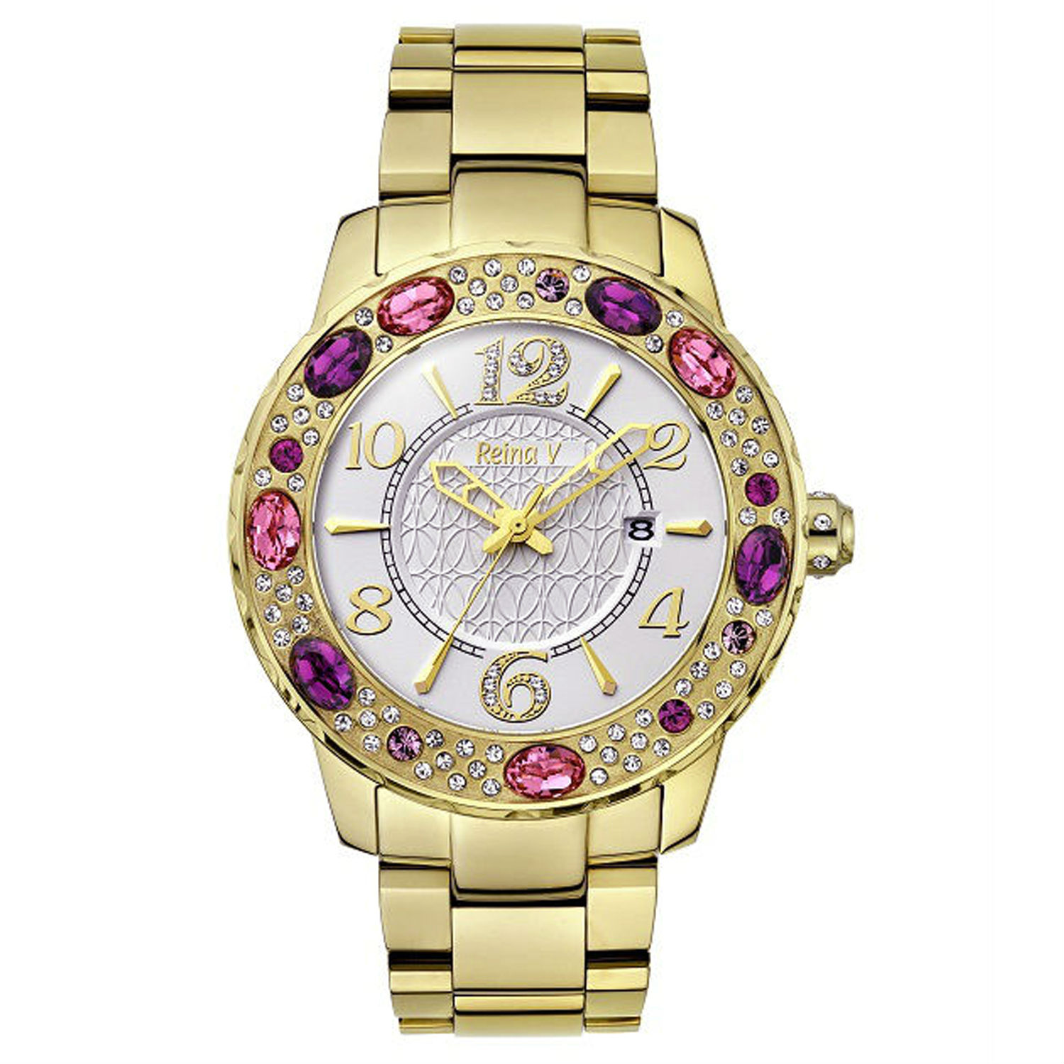 - Stainless steel case and band plated with gold.