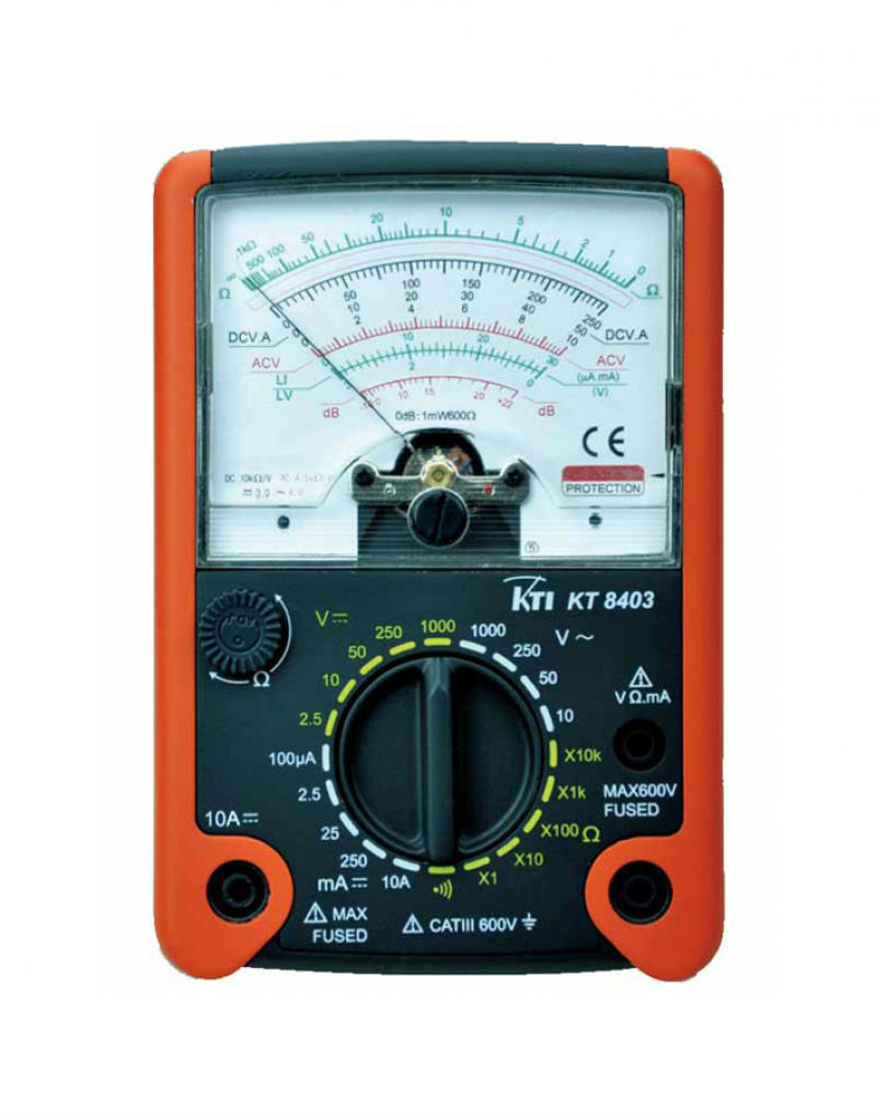 High accuracy and sensitivity analogue multimeter 20 ranges in 5 functions AC/DC voltage measurement up to 1000V DC current measurement up to 10A Resistance measurement up to 20MΩ Diode and continuity test Fuse: F500mA/250V F10A/250V Input impedence: 10KΩ/DCV/ 4.5KΩ/ACV