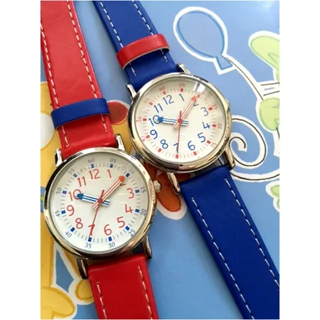 This analog watch has a round case in a metallic and has a white dial with Arabic hour markers. It has three hands to show the time and has a watch crown at 3H position. The watch is comfortable to wear and is excellent for matching a casual and stylish look.