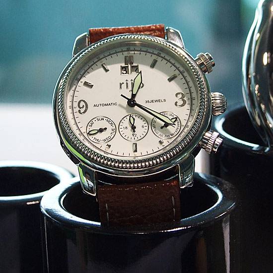 As shown is a watch with automatic movement. The case is of glossy coating. Scale is clearly shown with briefing Arabic numeral annotations.