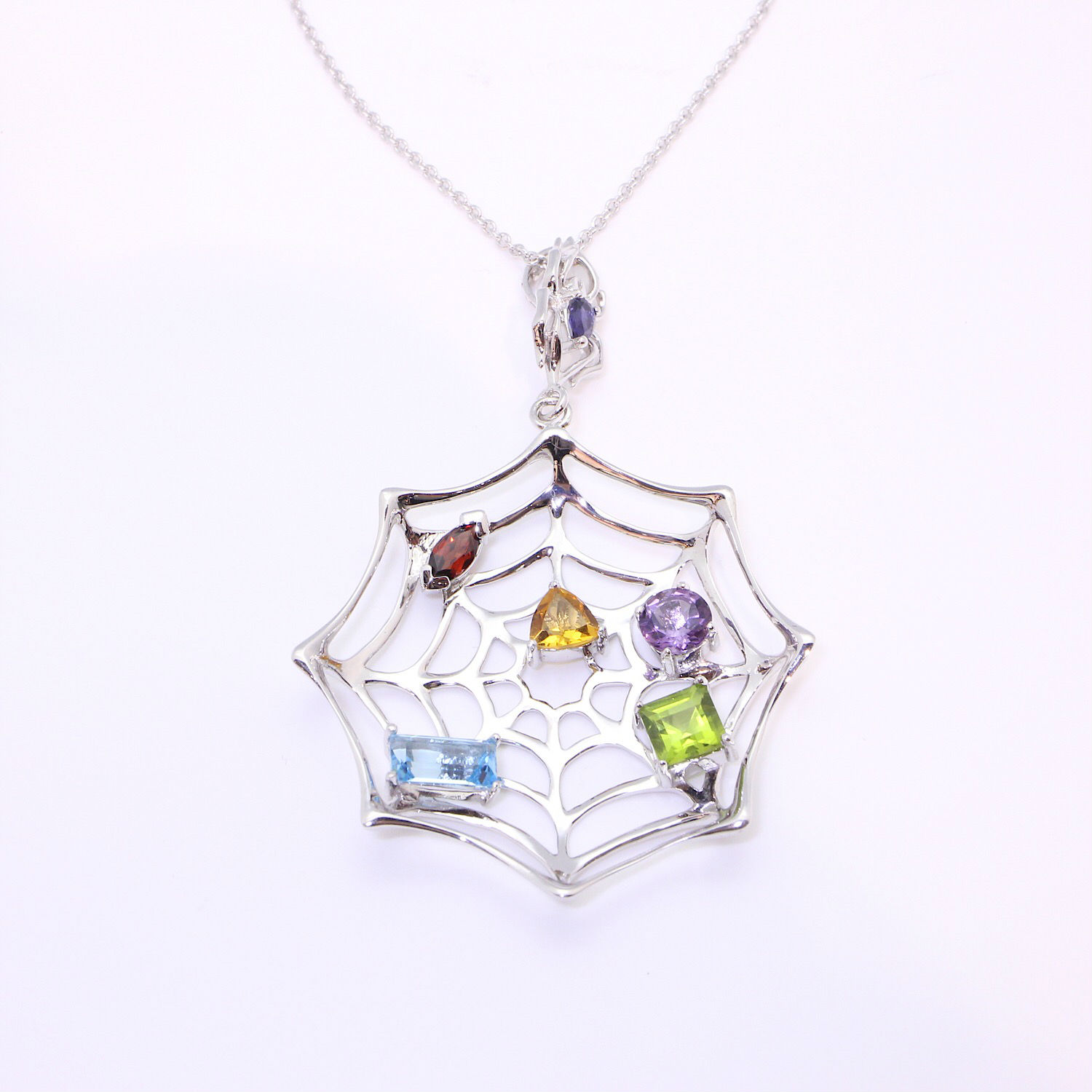 Sterling Silver necklace set with Iolite, Garnet, Blue Topaz, Amethyst and Citrine
