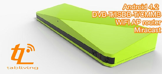 Displayed is an Android Digital TV bar that runs 4.2 Jellybean system. It support digital TV (DVB-T, ISDB-T, DAB, CMMB, T-DMB) and has wireless display function (Miracast, Wi-Fi direct, DLNA, Airplay).