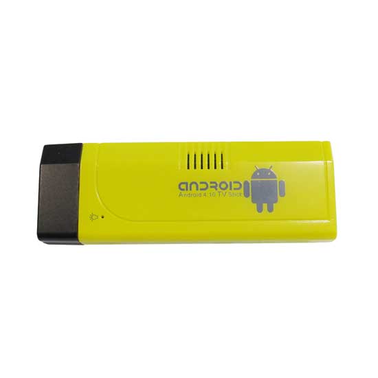 This stylish Android TV dongle features a sharp yellow exterior for a sense of attractiveness. Based on the Android 4.10 operating system, the TV box allows you to use the Internet browser on your TV. This practical and compact device surely is a great companion for your television.