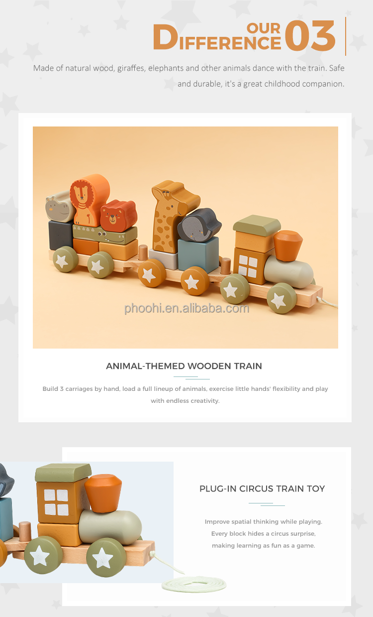 Our Wooden Animal Stacking Train combines the classic fun of stackable toys with the timeless appeal of a pull-along train. Crafted for tiny hands and growing minds, this colorful set encourages early learning through play, fostering creativity, motor skills, and cognitive development.