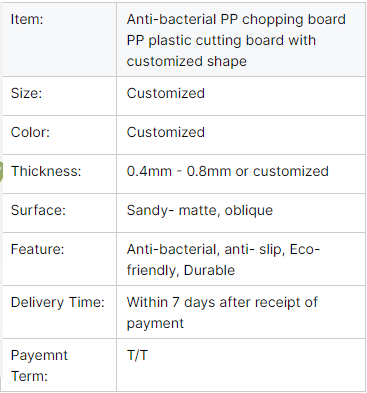 Anti-bacterial, Non-slip Durable PP Plastic Thin Cutting Board Custom Printed for Kitchen Chopping Boards
