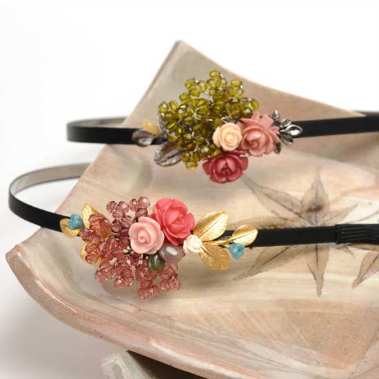 The hair bands from OTT gallery foreground Korean traditional designs. Every hair band is made with hands to ensure uniqueness and quality. Thick and thin hair bands adorned with floral embellishments are available for your choice.
