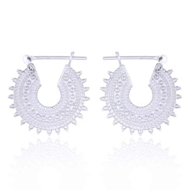 Antiqued Bali Round Curve Rhodium Plated 925 Hoop Earrings