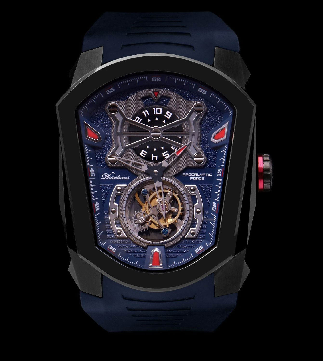 Channel your polished look with a sports sensibility with the Apocalyptic Force from Phantoms. Designed to bring a futuristic sense to life, this watch is infused with a heavy armored cyborg sensation with a multi-layered dial and a structural case. It visualizes each passing second by displaying the meticulous self-spinning mechanism, which proudly shows the impeccably precise timekeeping.