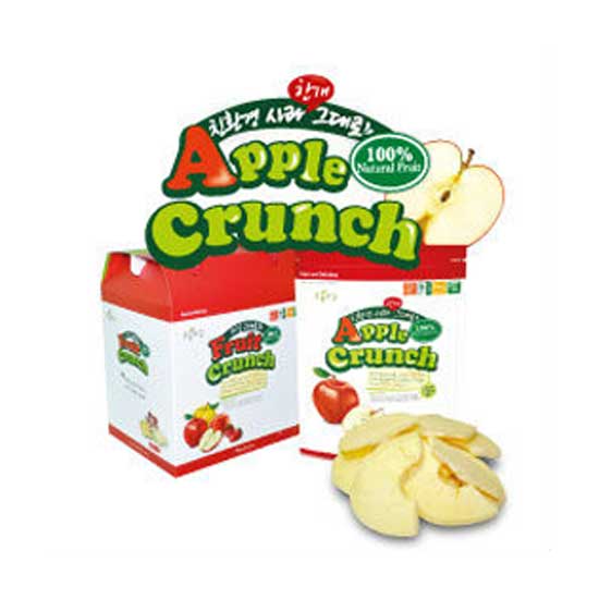 Pictured are apple crunches made with 100% naturally frozen and dried fruit. The apple crunches are sliced from real apples. No sugar, additives or preservatives were added in the manufacturing process.