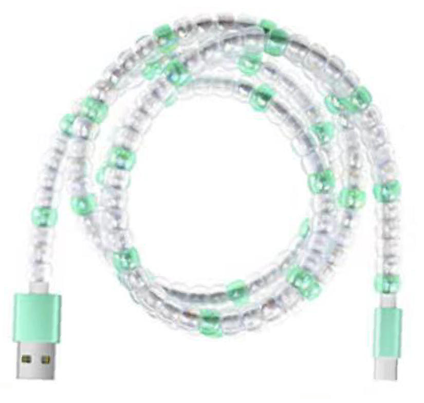 Experience the convenience and style of our Aqua Beaded Phone Charger Cable. Stay connected and charge your devices in style with this eye-catching and reliable charging solution.