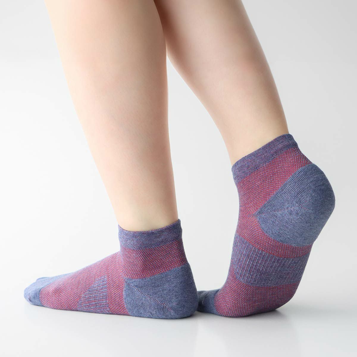 It designs with left-right direction, 3D warping support the foot. Knitted mesh face to provide ventilation and deodour yarn, foot health improving.
