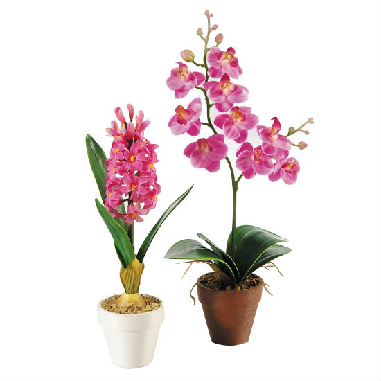 Fixed in a flower pot, this faux hyacinth blossoms vigorously season to season without wilting or watering to decorate interiors of any homes and offices for a touch of liveliness. Numerous blossoming flowers, buds and animated leaves are crafted on the spray for a realistic appearance.