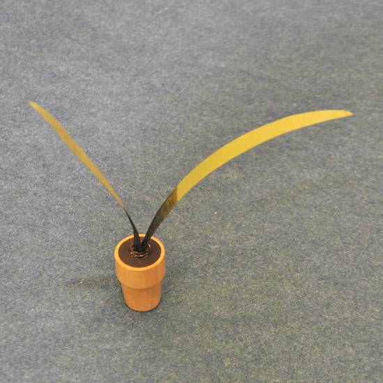 This is an aroma reed diffuser in a leaf in a pot design. Fragrance is contained inside the miniature plant pot. The leaves are able to transfer fragrance over a higher surface area.