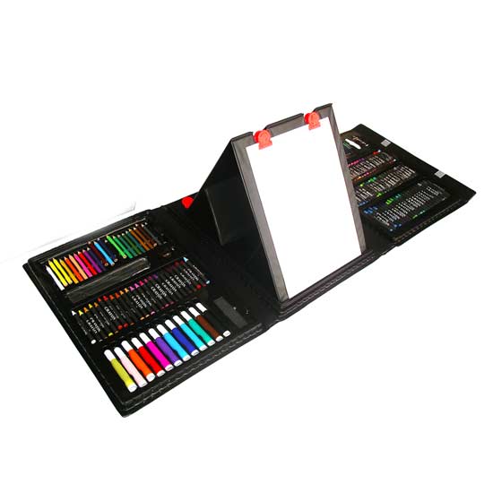 Featured here is an art coloring set with crayons, color pencils, paper clips, pencils, erasers, etc. The pigmented colors of this coloring set are good for advanced students and artists. This coloring set is a great gift item to inspire your child's artistic potentials.