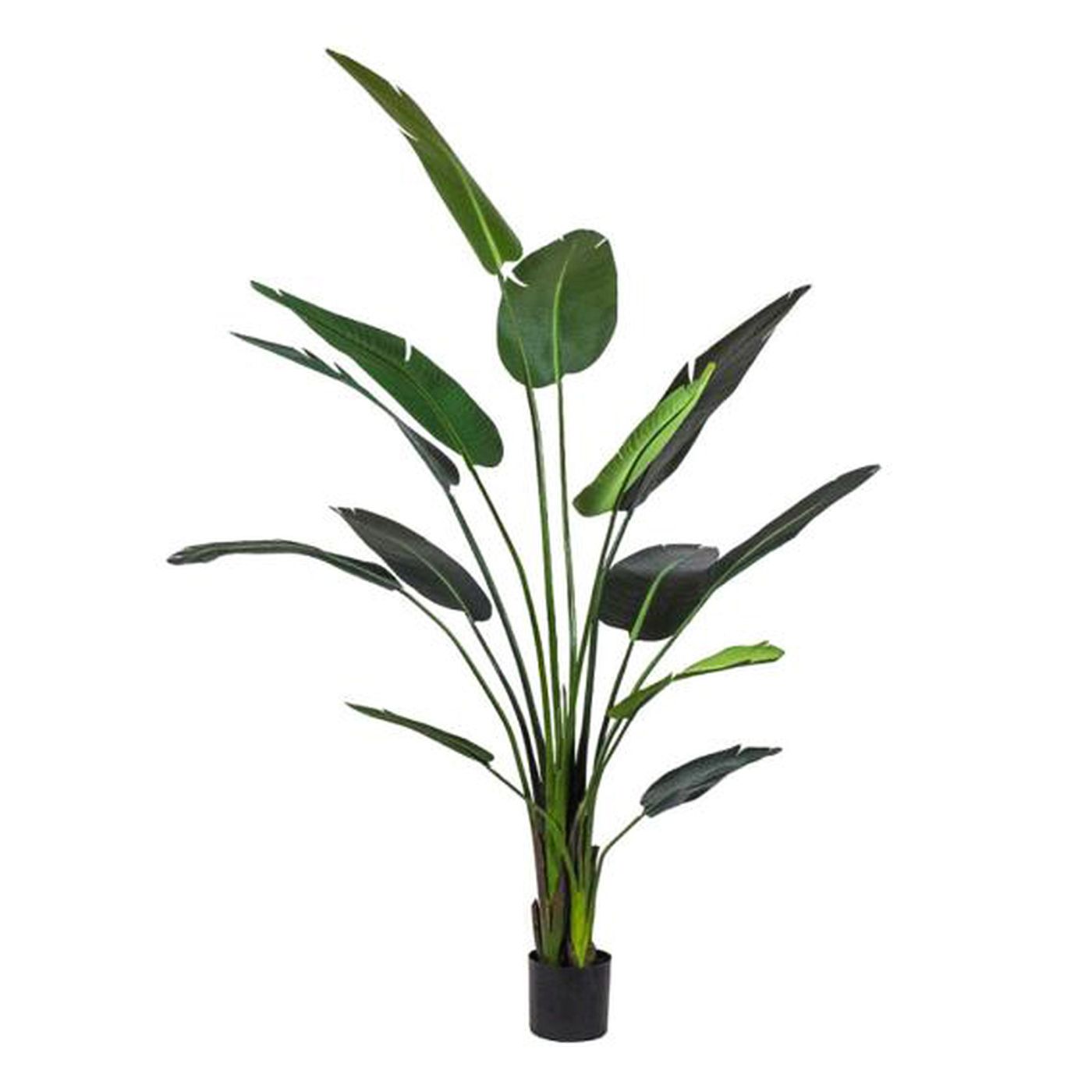 This artificial bird of paradise tree is made of plastic. It creates a green accent to beautify the space. It is a good decoration for your home or workplace.