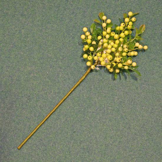 The picture shows a cluster of artificial berries, which is great putting in a vase for decorating your home, garden, shop and office. With numerous yellow berries adorned with green leaves, it is highly realistic and natural in style.
