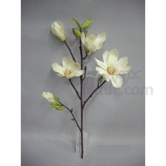 40cm matte satin magnolia branch w/3 fls 2 buds & 4 flocked herries on real