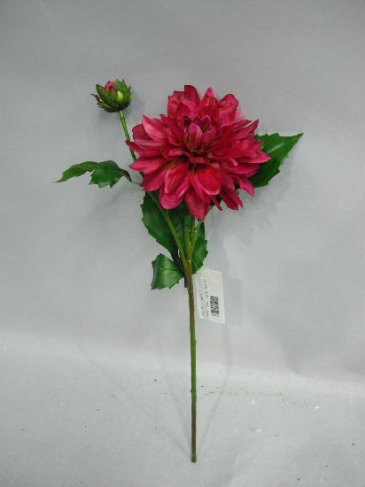 (Coated fabric/silk) 19.5" med dahlia spray w/1 flrs 1 bud 3 set lvs in coated stem.