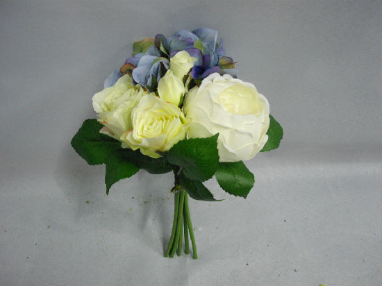 11" mixed rose/hydrangea bouquet in PVC stem wrapped by grn raffia in PVC stem.