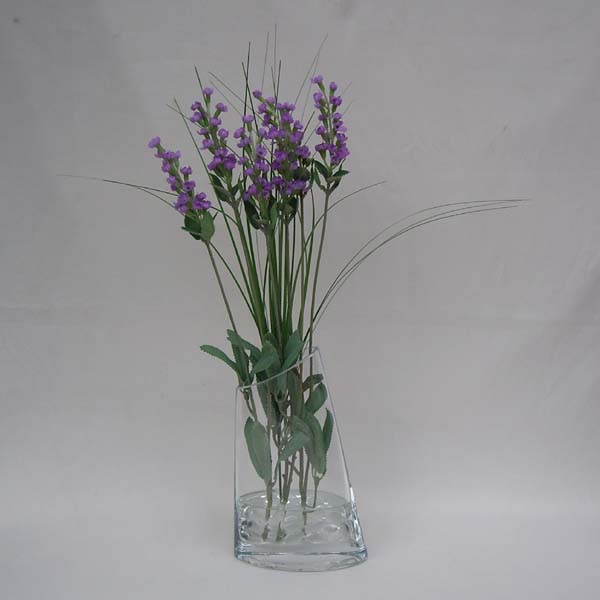 Lavender & Grass arrangement on glass vase w/acrylic water