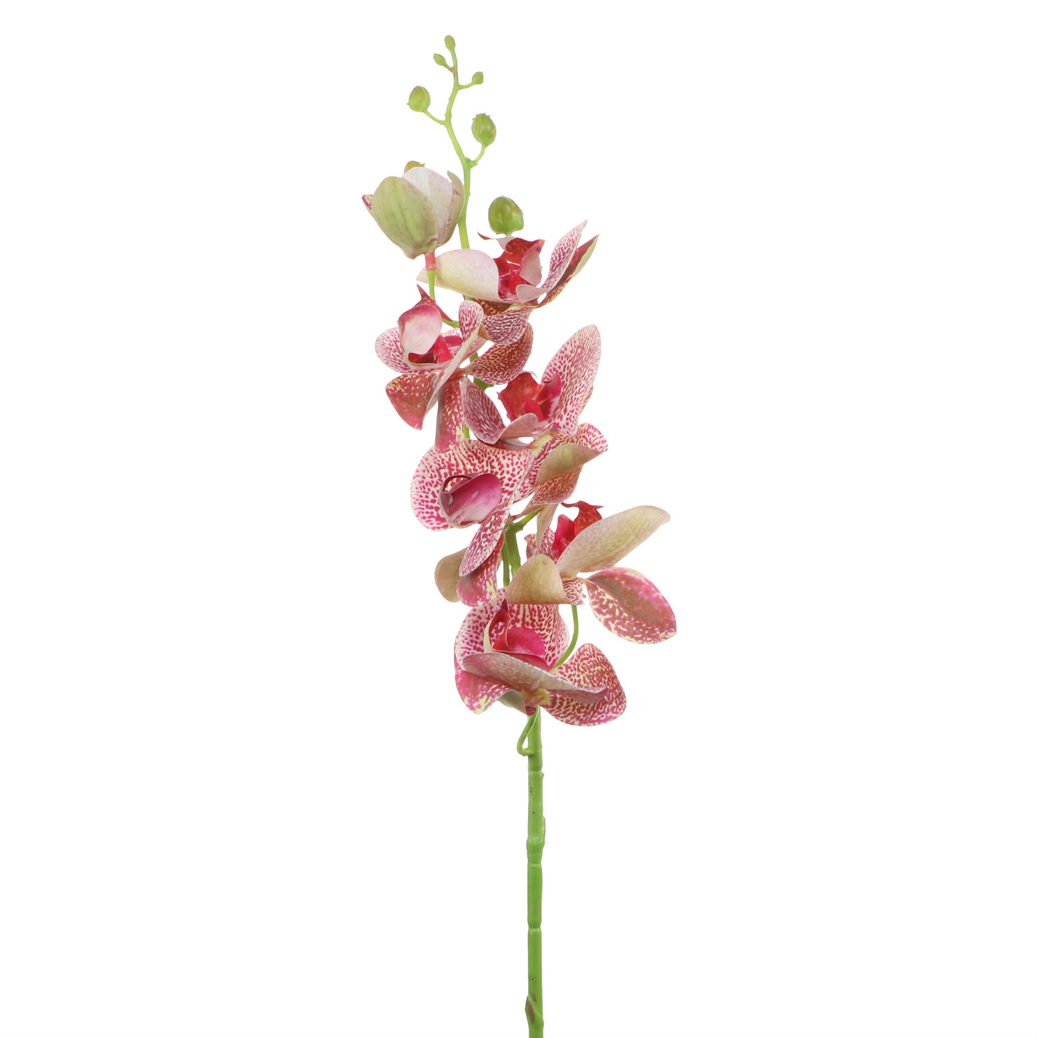 Enjoy the everlasting beauty of nature with this artificial orchid. Skillfully crafted of polyester and plastic material, this artificial orchid flaunts a highly realistic look and will never wither or fall. It comes in the design of small flowers on a straight branch and is great for interior decoration, holidays, special occasions and more.