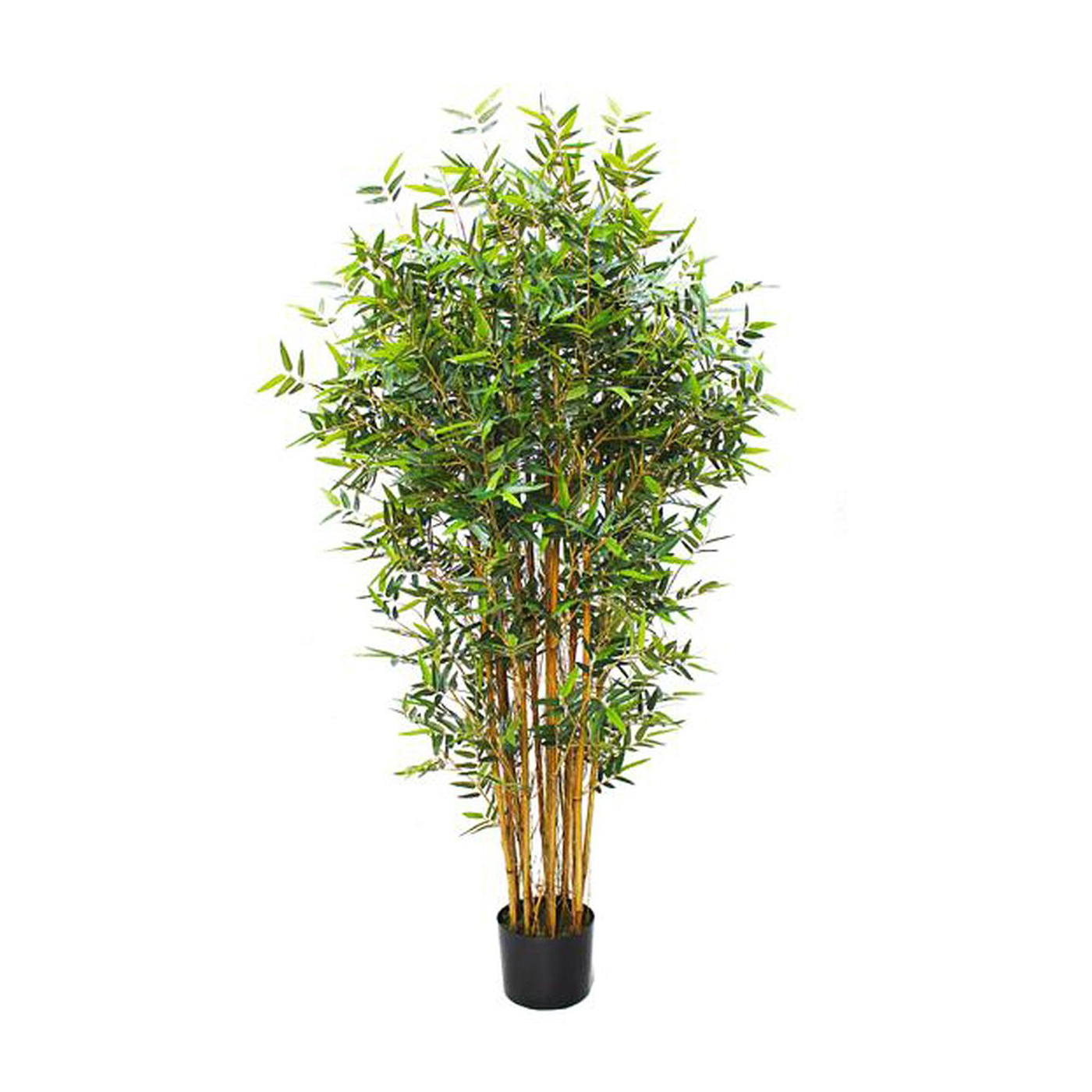 The artificial plant of the oriental bamboo tree on a plastic base.