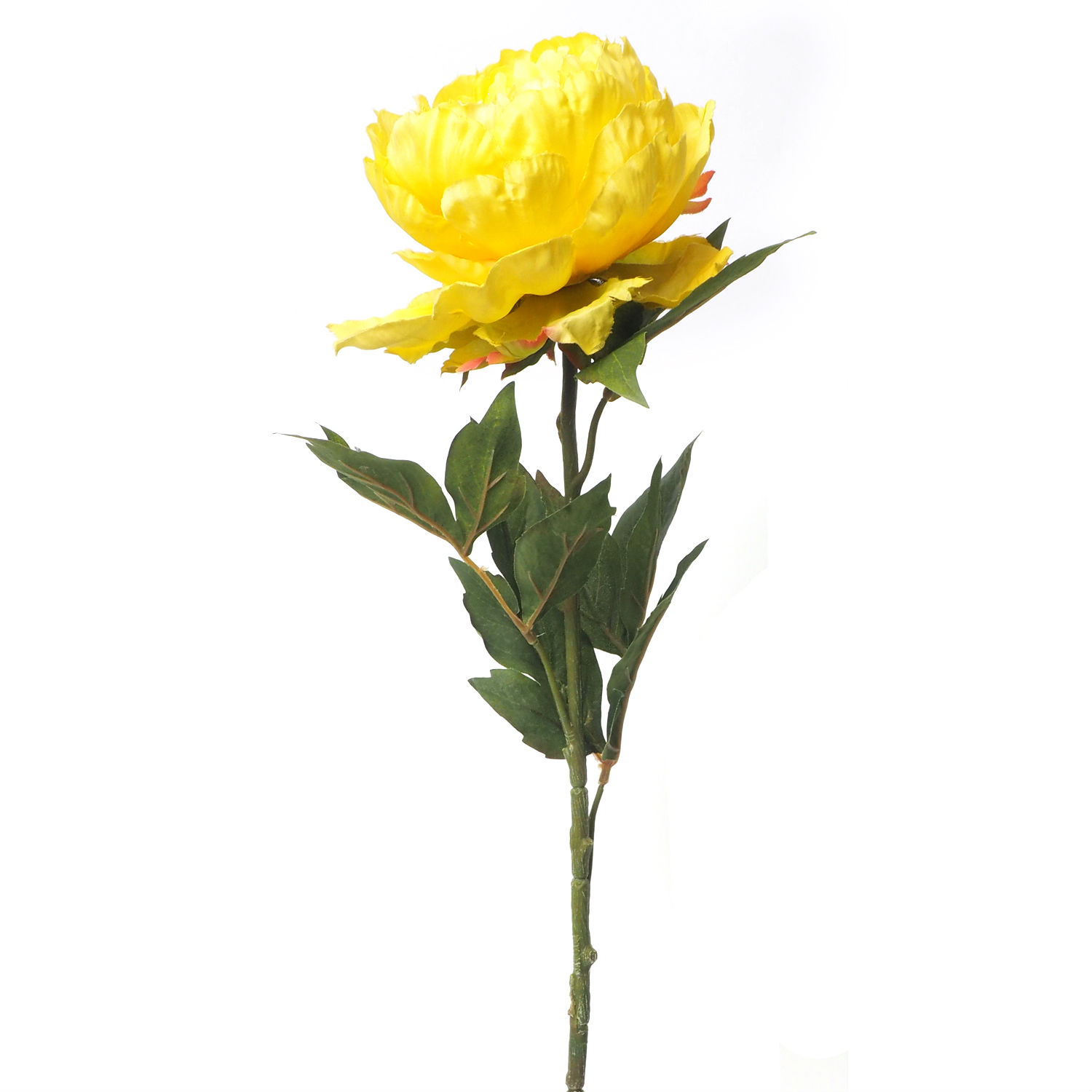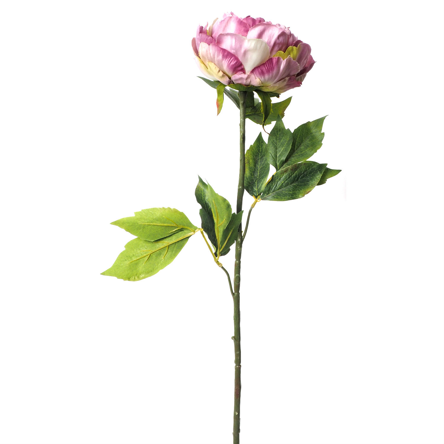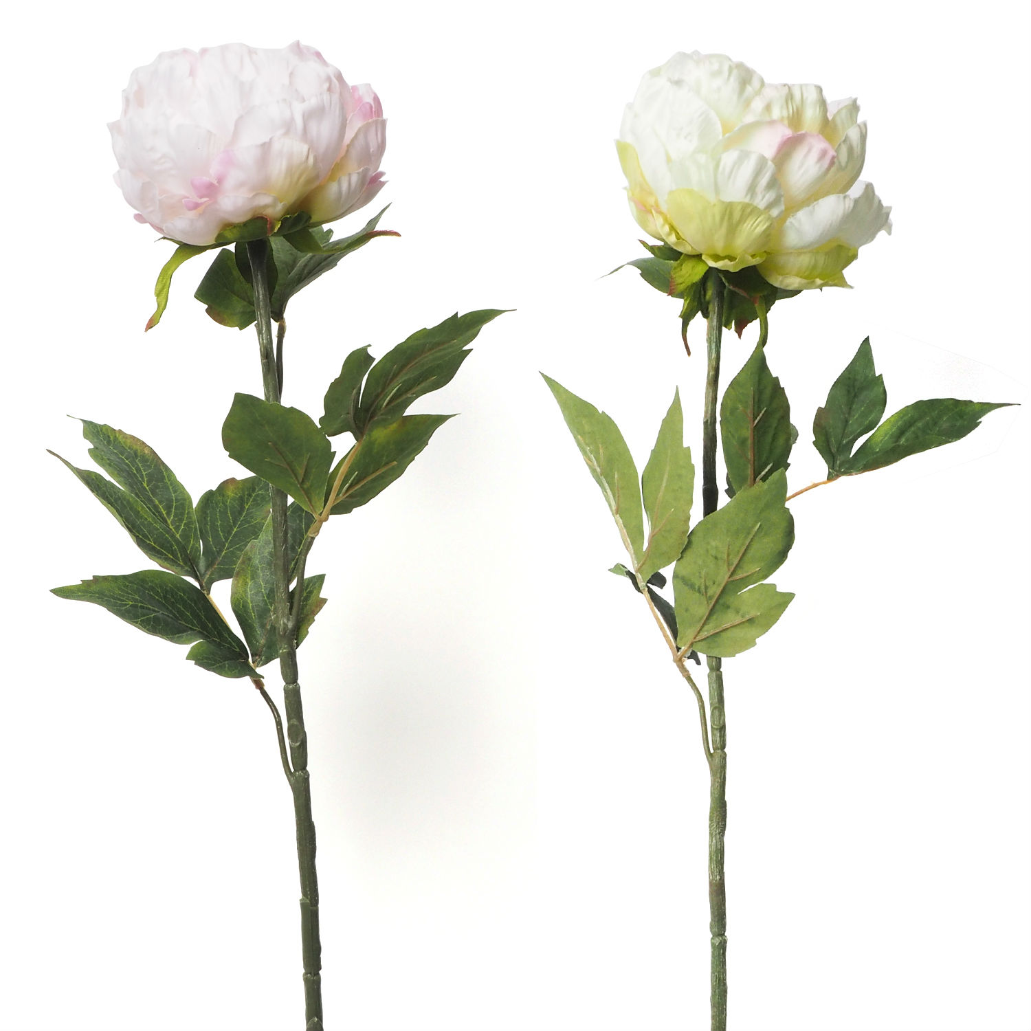 Blooming to perfection, this charming cream peony is finished with pink edges for a delicate color texture. The branches of leaves brighten the stem for a refreshing look. This charming piece will surely add an elegant floral accent to your settings.