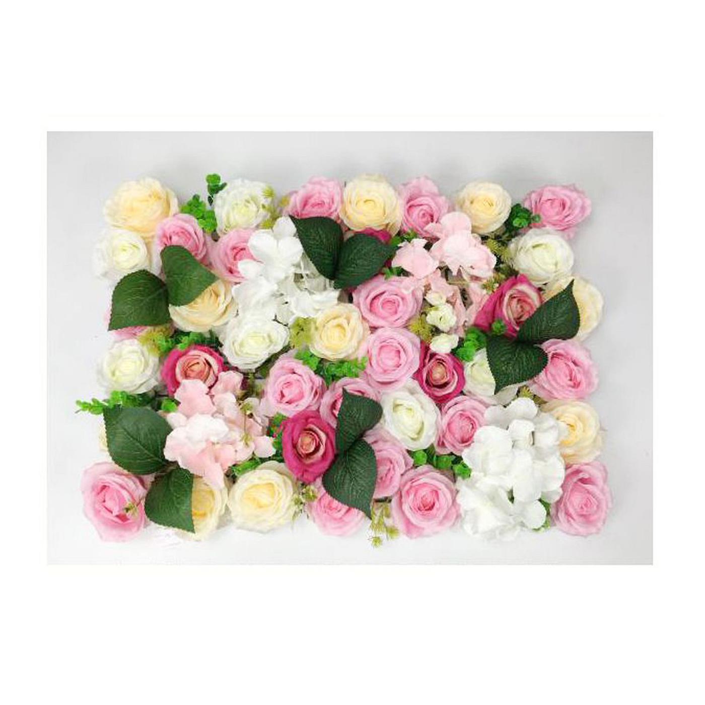 This artificial flower wall mixed hydrangea and rose is made of plastic which is weather. It is a good decoration to your home or workplace.
