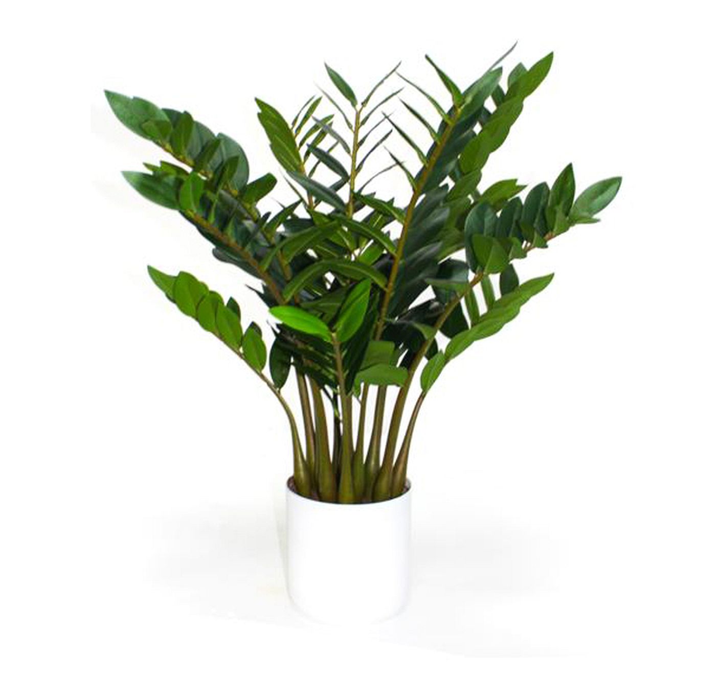 The artificial plant of the zamilculcas plant tree on a plastic base.