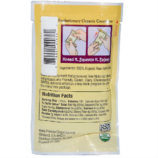 At Artisana, we believe better nuts make better butters. To make our raw almond butter, we source directly from small, organic California almond farmers. California almonds are sweeter than European varieties, and give our nut butters an exceptionally rich taste. We hand-select and sort only the best almonds, then grind them in small, temperature-controlled batches to preserve their raw, living vitamins, minerals and enzymes.