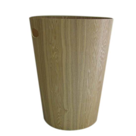 This is a wooden veneer hamper or laundry basket. The wooden hamper is of a cylindrical shape and it is deep to hold many clothes for laundry. The hamper can also be used as a bucket or basket for storing different household items.