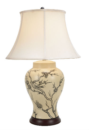 Pictured here is a quality table lamp in Asian style. The bird and garden print in Chinese painting style presents beautifully on the classic porcelain vase. With the use of soft colorings, the lamp can easily blend into different home décor.