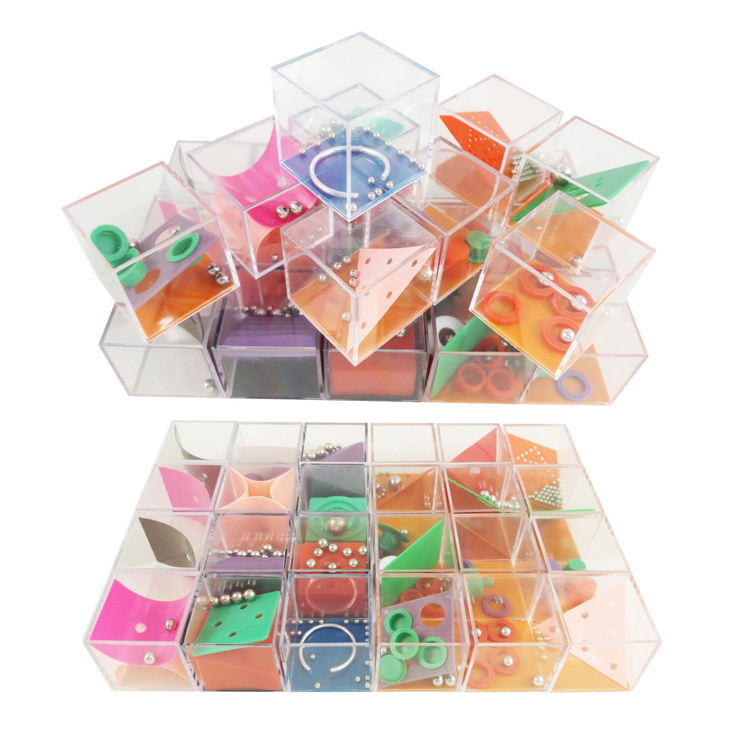 • Kids can twist and turn the cubes to manoeuvre the balls around the mazes.